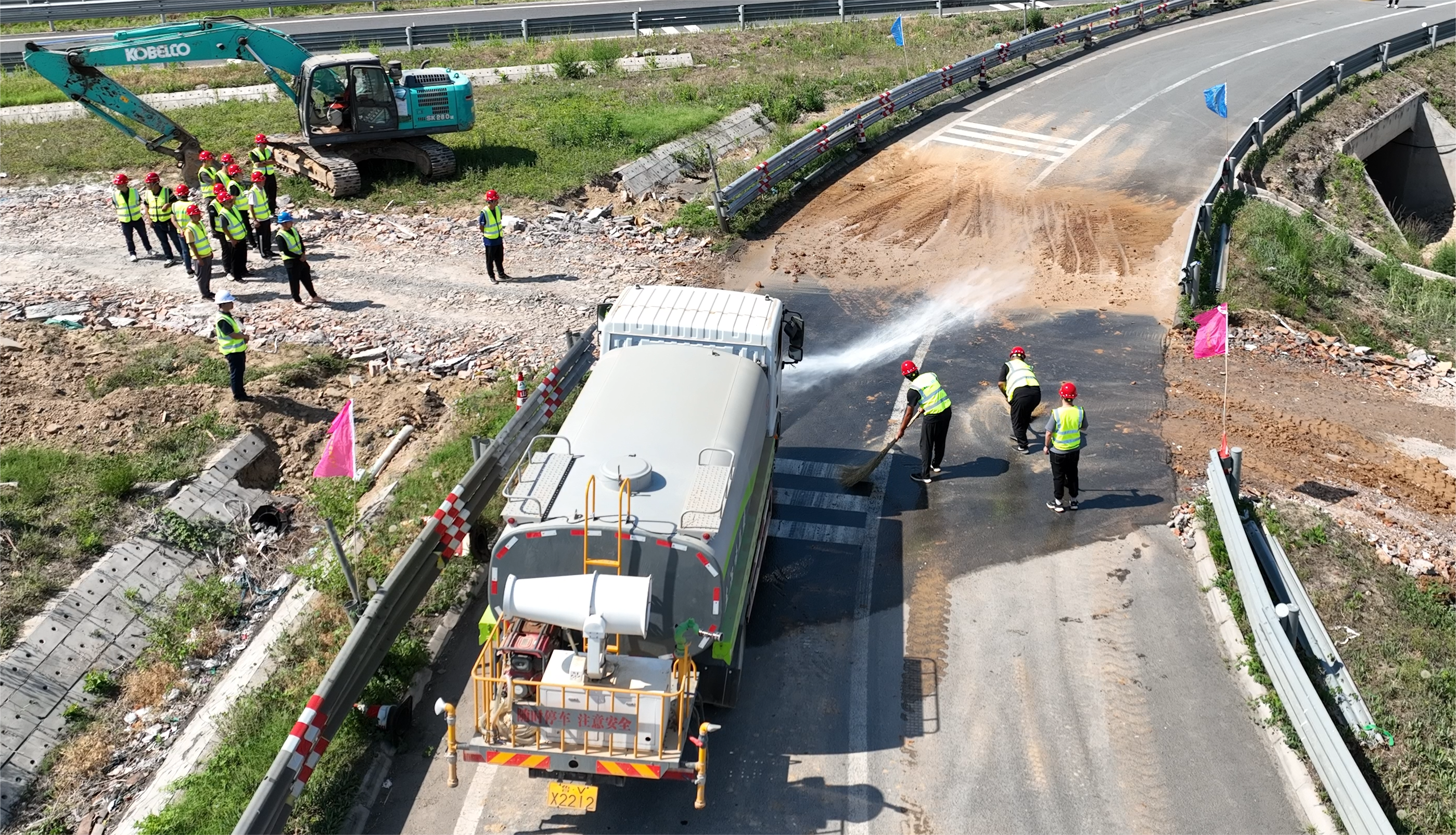 我公司道路搶通專業(yè)救援隊使用裝載機(jī)、挖掘機(jī)、自卸車等專業(yè)設(shè)備清除障礙,道路交通得以恢復(fù)。